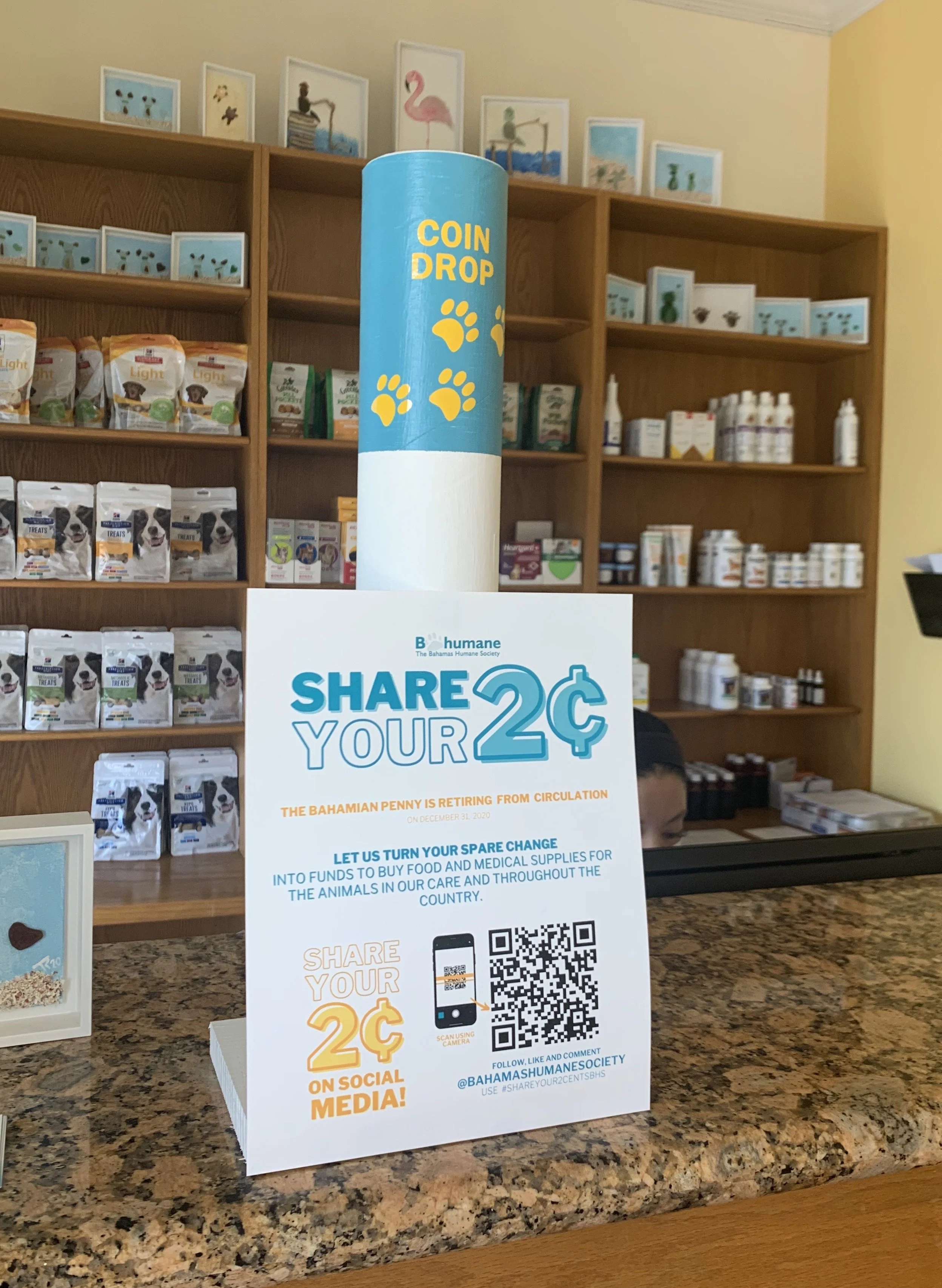 The Bahamas Humane Society’s Share Your 2 Cents campaign was launched in an effort to collect The Bahamian penny before it retired from circulation in 2021. The loose change collected would help to fund food and medical supplies.